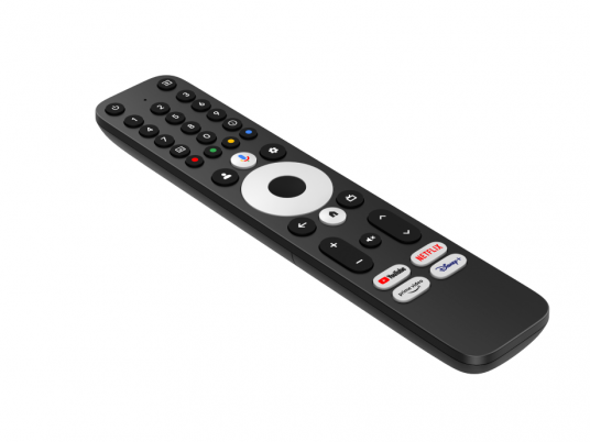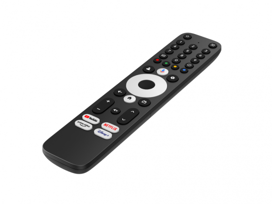 The remote control for the MAG555, featuring both Bluetooth and IR support, is available for purchase separately from the set-top box. It provides stable device control via a wireless Bluetooth connection as well as through the infrared port. The remote is equipped with all the essential media player control buttons, along with dedicated shortcut keys for popular video services including YouTube, Netflix, Prime Video, and Disney+. An additional Hey Google voice assistant activation button enables instant content search and voice command execution for more convenient operation.